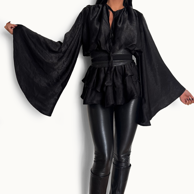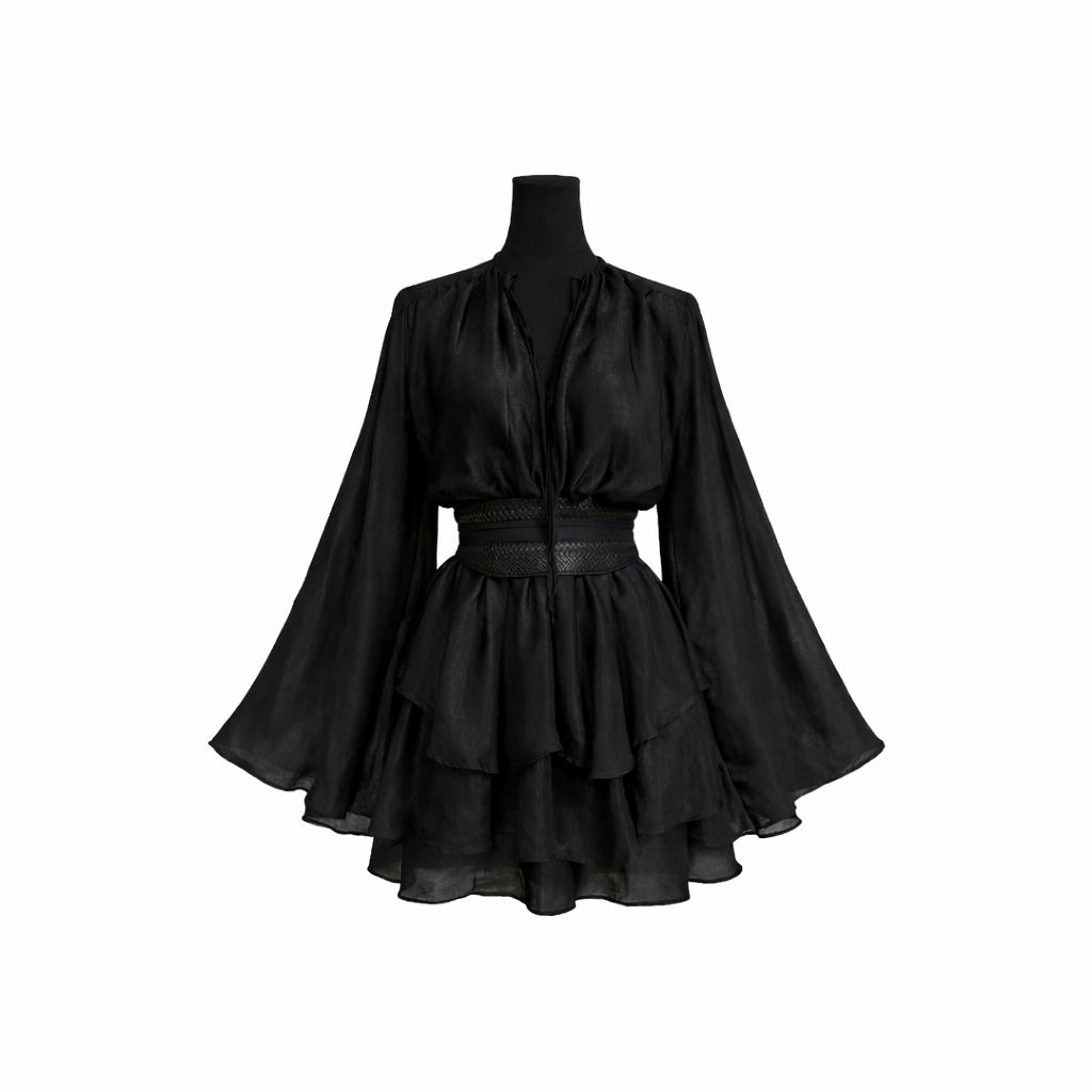 Une robe libre, fluide et féminine, pensée pour s’adapter à toutes les silhouettes et à toutes les envies. Ses manches amples et vaporeuses créent un tombé aérien, tandis que son tissu léger accompagne chaque mouvement.